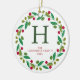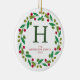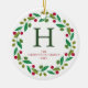 Ornamento De Cerâmica Foto da família Floral Christmas Wreath Monogramme