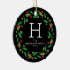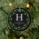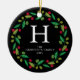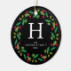 Ornamento De Cerâmica Foto da família Floral Christmas Wreath Monogramme