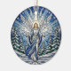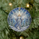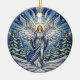 Belo e fino anjo azul de vidro manchado com pinheiros e montanhas no fundo de uma cena de inverno. Adicione uma foto especial, um nome de família e um ano para uma bela manutenção do Enfeites de natal. Veja a coordenação de itens no nosso compro, Encantado Finch.