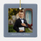 Ornamento Cerâmico Personalizado de Foto Religiosa Azul Na Primeira Comunhão. Parte do Pacote de Convite da Primeira Comunhão Dusty Blue Cross Boy com convite, papelaria e acessórios de festa correspondentes disponíveis.