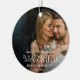 Enfeites de natal moderno com um layout mínimo com "Casado" em tipografia ousada junto com seus nomes e o ano sobre sua foto favorita. Todos os elementos de texto são brancos e podem ser alterados na ferramenta de edição de design. Este ornamento simples, mas elegante, é um presente excelente para um casal recém-casado ou para comemorar seu próprio casamento.