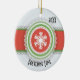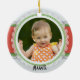 Ornamento De Cerâmica Foto datada de Natal rosa e verde feliz