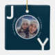 Ornamento De Cerâmica Foto de alegria branca azul-natalina moderna
