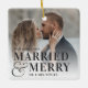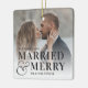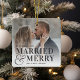 Mostra uma foto de casamento favorita com esta design de Natal ousada e moderna, baseada na tipografia, com "casada e feliz" sobreposta em letras negras e unida por uma amperse de tamanho excessivo. Personalize com seu casamento e nomes. Design repete-se no lado oposto.