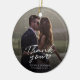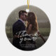 Um excelente e uma maneira séria de obrigado aos seus amigos, família e colegas de trabalho que apareceram para apoiar e ajudar no seu dia de casamento com este obrigado fotográfico moderno que vocês Enfeites de natal com o roteiro, escreveu com a letra "obrigado você" e um coração de amor.