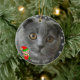 Ornamento De Cerâmica Foto de Cat da Cinza Personalizada com Elf Fofo