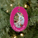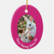 Ornamento De Cerâmica Foto de coelho e criança em moldura oval rosa azul