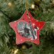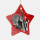 Enfeite de estrela vermelha com quadro fotográfico para seu tocador de saxofone favorito. Personalize com sua própria foto e altere o texto na parte traseira do ornamento para atender às suas necessidades.