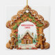 Esta divertida foto de Natal apresenta um doce gerado por IA coberto por uma foto de Gingerbird perfeita para destacar sua foto favorita de feriado. Nas costas está outra casa de pão de gengibre com um lugar para personalizar com nomes e o ano.