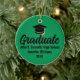 Este ornamento de Natal clássico verde e preto personalizado para graduados apresenta tipografia moderna do nome da sua escola ou faculdade para a turma de 2026 com a foto do seu graduado no verso. Personalize com o ano de formatura sob o script manuscrito chique e o chapéu de graduação para um presente de formatura personalizado e inesquecível.