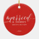 Elegante cheio sangrava ornamento personalizado com um tema "Casado e Feliz" perfeito para recém-casados.