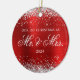 Crie seu próprio "Nosso Primeiro Natal como Sra. & Sr." circula ornamento fotocerâmico para recém-casados. Brilhante prateado brilhante e estilo metálico vermelho brilhante folha de papel digital. Adicione seu casamento ou imagem de lua de mel. Você pode personalizar o estilo de texto, a fonte ou as cores.