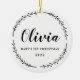 Primeiro ornamento de Natal personalizado com a coroa branca e negra rusticada moderna, com o seu nome personalizado, ano e fotografia.