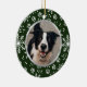 Personalize este padrão de impressão verde e branco de floco de neve / pata da floresta invertida com a foto do seu animal de estimação na frente. As costas têm uma modelo para adicionar o nome do seu animal de estimação e um ano. >>> Para alterar a fonte, o tamanho e a cor do texto, use o botão Personalizar. <<< A foto do animal de estimação e as modelos de texto personalizadas têm um quadro de borda impresso em prata falso.