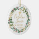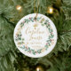 Ornamento De Cerâmica Foto do Batismo do Bebê da Folhagem Dourada Verde