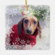 Ornamento De Cerâmica Foto do primeiro Natal com flocos de neve