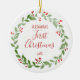Esta design apresenta uma coroa aquática de natal em volta do nome do seu bebê, "Primeiro Natal", e o ano em tipografia vermelha e fontes manuscritas. Personalize o reverso com uma foto favorita do seu bebê, cercada pela mesma coroa.