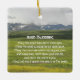 Um ornamento ao estilo quadrado com a imagem paisagística cênica de um vasto vale verde e montanhas, juntamente com uma bênção tradicional irlandesa. Imagem impressa apenas num lado. Selecione o seu estilo de ornamento. Faz um presente pensativo para a família e os amigos!
