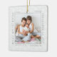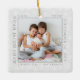 O ornamento de fotos de natalidade com flocos de neve brancos delicados em um fundo de cinza prateada. O modelo fotográfico está pronto para você adicionar sua foto de bebê, que é enquadrada com suas estatísticas de natalidade recém-nascida. Você pode adicionar a mesma foto ou outra no verso, ambas exibidas em formato quadrado, de modo que, se você tiver algum problema com a colocação, tente recortar a foto em um quadrado e recarregar.