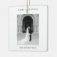 Enfeites de natal moderno com um design simples e mínimo com "feliz natal" acima da sua foto e seus nomes abaixo.