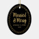 Um elegante enfeites de natal quadrado de folha de ouro com as palavras, casado e Feliz. Personalize com seus nomes, sua data de casamento e uma foto atrás. Projetado para você pelo Blackberry Boulevard.