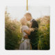Você se casou este ano? Adicione uma memória à sua árvore de Natal com este moderno ornamento de manutenção do casamento com linhas de ouro geométricas, uma no canto superior esquerdo e outra na parte inferior direita, sobre um fundo branco. Use a modelo para adicionar seus nomes e ano de seu casamento à frente e sua foto favorita ao fundo. Este ornamento simples e minimalista também faz um presente excelente a um novo casal para o seu primeiro Natal.