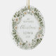 Celebrar o primeiro Natal do bebê com este ornamento de manutenção, apresentando uma camada aquosa de verde florestal e flores brancas. A palavra "Natal" aparece num delicado guião verde de escrita manual. Personalize o ornamento com o nome do bebê e o ano na fonte verde sans serif de um lado e sua foto favorita do outro.