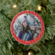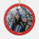 Este ornamento cerâmico na moda apresenta sua foto favorita emoldurada em um simples padrão botânico vintage em vermelho e branco. Personalize com o ano.