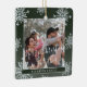 Inverno elegante e russo, caçador escuro verde e xadrez branca, modelo de ornamento de árvore de manutenção com cintilação espumante de flocos de neve. ++++++++++++++++++++++++ Fácil de personalizar com suas 2 fotos, texto, nome da família e ano!