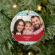 Ornamento De Cerâmica Foto personalizada de Boughes of Holly Red Ribbon