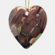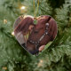 Crie um ornamento personalizado com uma foto do seu cavalo de um lado, seus nomes e ano atrás deste ornamento cerâmico personalizado em forma de coração com a mensagem "Feliz Natal", perfeito para o dono do cavalo, amante ou cuidador ou como parte de um presente temático.