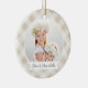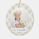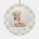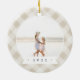 Um adorável ornamento fotográfico de dupla face exibindo uma foto favorita em cada lado, em um fundo de xadrez leve neutro pintado à mão. Personalize com uma legenda personalizada na frente em letra manuscrita e adicione o ano no verso.