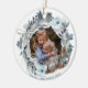 Ornamento De Cerâmica Foto Personalizada, Feriado Branco Azul Elegante