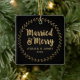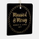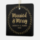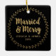 Um elegante enfeites de natal quadrado de folha de ouro com as palavras, casado e Feliz. Personalize com seus nomes, sua data de casamento e uma foto atrás. Projetado para você pelo Blackberry Boulevard.