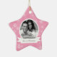 Ornamento De Cerâmica Foto Rosa Snowflakes