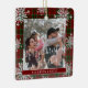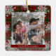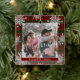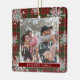 Inverno elegante, vermelho e xadrez verde, modelo de ornamento da árvore com flocos de neve cintilante. ++++++++++++++++++++++++ Fácil de personalizar com suas 2 fotos, texto, nome da família e ano!