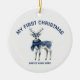 Ornamento De Cerâmica Fotografia do Primeiro Natal do Bebê em Aquarela