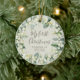 Ornamento De Cerâmica Fotos do Primeiro Natal do Bebê com Snowberry Eleg