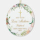 Com uma delicada grinalda floral em aquarela, este ornamento comemorativo de batismo ou batizado de menino ou menina pode ser personalizado com sua foto especial e detalhes do evento. Criado por Thisisnotme©
