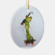 Um sapo de desenho tocando golfe decora este adorno cerâmico engraçado
