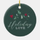 Vermelho escuro e tons de verde de um ornamento de foto festivo com padrão de azevinho. Personalize com sua própria foto. Escreve "amor de Natal" no verso ou pode ser personalizado com sua própria mensagem. Outros itens correspondentes estão disponíveis e podem ser criados mediante solicitação. © Desenho original por www.mylittleeden.com em Zazzle.