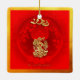 Papel de coelho ouro cortado em círculo decorado com lanterna chinesa e ideograma de Fu (que significa sorte), florescências e saudações chinesas em pequenos círculos sob o coelho + "Ano do coelho" em estilo escrevendo à mão num papel texturizado de ouro (imagem impressa). Design sobre ornamento cerâmico quadrado para o Ano Novo Chinês do Coelho 2023. Cartão de saudação, cartão postal, cartão plano quadrado, suprimentos de festa e muito mais...