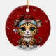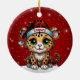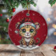 Fun Leopard Red Sparkle Animal Print Lover ceramic ornament featuring a fun blend of spots and a cute Christmas cartoon graphic showcasing a spotted kitten with personalizable santa hats. Customize by changing the text name. Perfect for feline kitty cat lovers, making it a great gift for any feline fan. Same design is on both sides, which insures your decorations always look festive and complete. Add a unique touch of wild holiday spirit cheer to your tree decor with this customizable one-of-a-kind, purr-fect Xmas season keepsake! 🐆🐈🐾
