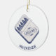 Raise a smile with this fun sardine tin design, perfect for trend setting fish lovers! Bring a touch of Mediterranean style to your holiday decor. Block print style in blue and white with original art by Nic Squirrell. Change the name or text to personalize.