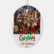 This festive holiday ornament features a cheerful greeting and space for one small vertical photo. Your photo is flat printed, creating a crisp and vibrant image. The letterpress printing process adds a luxurious, tactile feel, giving your ornament that extra “wow” factor. Perfect for adding holiday cheer to your Christmas tree or gifting to loved ones, this ornament combines classic elegance with personal charm for a memorable keepsake.