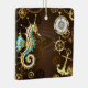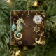 Ornamento De Cerâmica Fundo de madeira com cavalo de mar mecânico