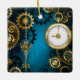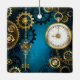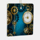 Turquesa, texturizada, fundo steampunk com latão e engrenagens douradas, chave prateada e relógio. Estilo Steampunk.