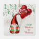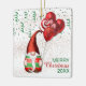 Este adorável ornamento de Férias faz um presente divertido para qualquer um! A frente e o verso apresentam um gnomo branco engraçado vestindo um chapéu de Papai Noel vermelho e uma jaqueta listrada vermelha e verde. Ele está segurando um monte de balões vermelhos. Atrás dele está o verde e o confete dourado. O texto verde e vermelho no canto inferior direito dá uma saudação e o ano que você escolher. A parte traseira do ornamento tem mais dois campos de texto para você personalizar.