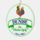 Senhora de frango no estilo de uma placa de safena. Possui uma galinha multicolorida bonito, nome e ano de nascimento. Perfeito para a garota que é amante de frango.