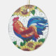 Esta ilustração do divertimento seria uma grande adição a sua decoração chique do encanto do país ou como um presente para alguém que recolhe galinhas ou galos. Esta é uma ilustração do lápis da aguarela de um galo feito no vermelho, nos marrons e nos azuis da oxidação com os girassóis na parte superior e na parte inferior para fazer uma beira. É moldada toda dentro com azul e branco teste padrão verificado um guingão.